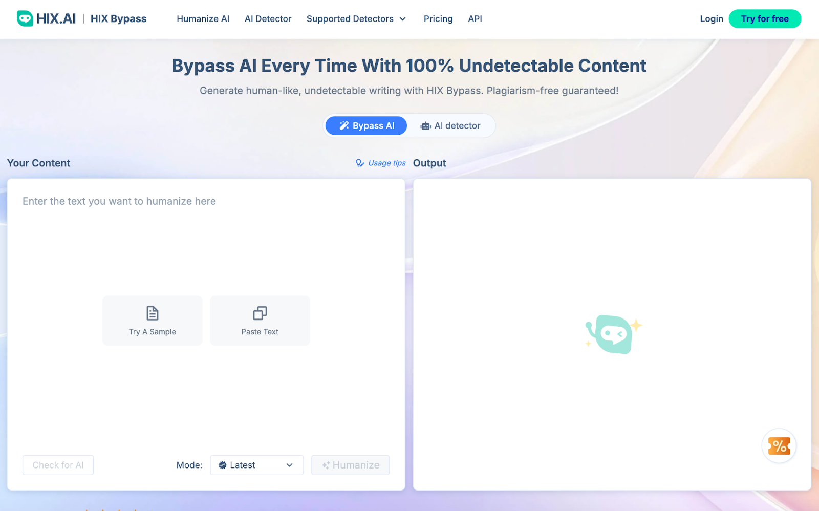 1. HIX Bypass – найкращий AI Humanizer, який неможливо виявити