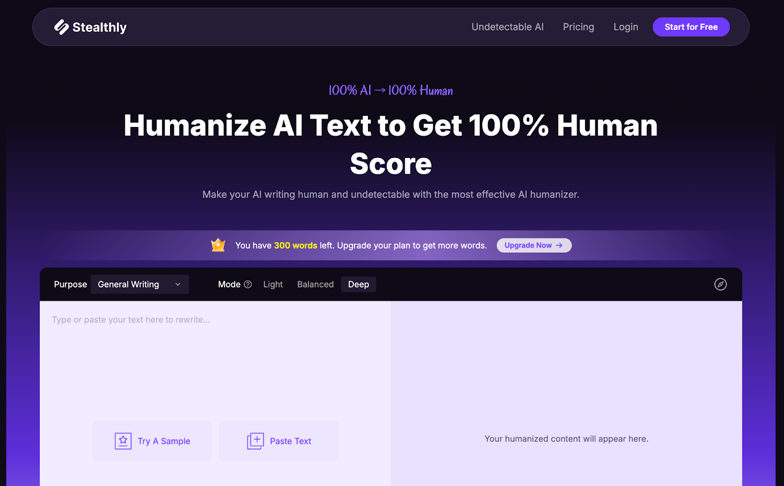 Stealthly – найкращий невиявлений AI Humanizer для швидкої гуманізації AI