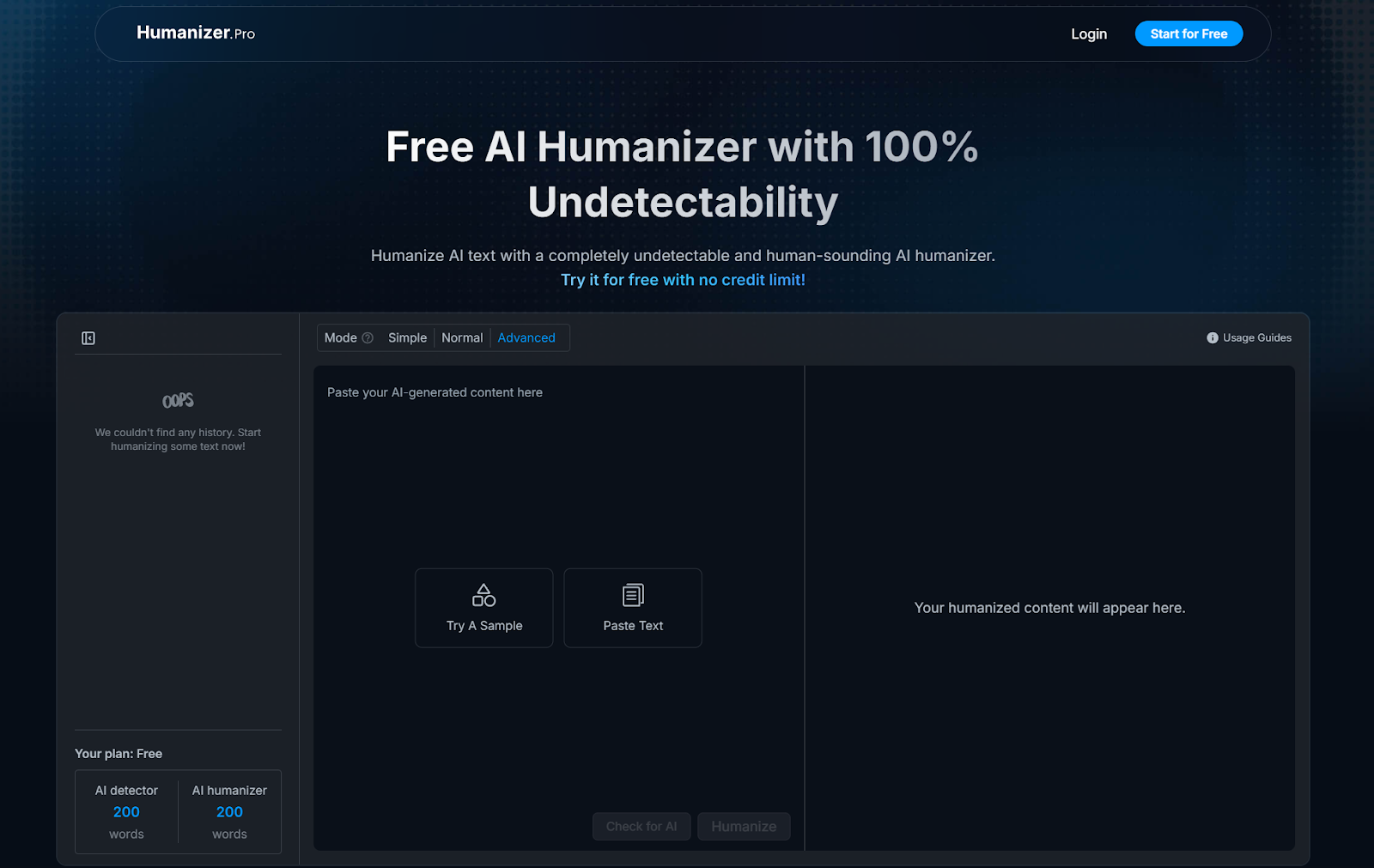 5. Humanizer Pro – найкращий невиявлений AI Humanizer для виводу без плагіату