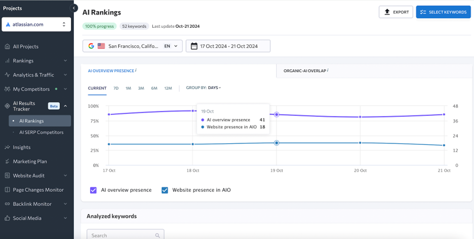 Наступним кроком є ​​оптимізація того, як ви відстежуєте свою присутність в AIO. Відстежувати кожне ключове слово вручну складно та займає багато часу, тому автоматизований інструмент є обов’язковим.