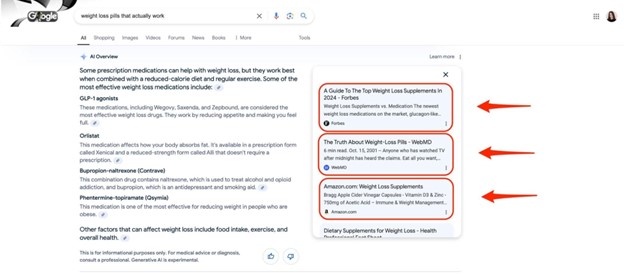 Звичайно, багато спеціалістів із пошукової оптимізації найбільше стурбовані тим, чи включено їхній сайт до списку джерел AI Overviews.
