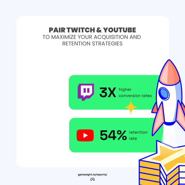 Одним із висновків звіту були сильні сторони різних платформ. Наприклад, з двох основних відеосайтів для геймерів Twitch пропонує втричі вищі показники конверсії, головним чином завдяки формату реклами, який не можна пропускати, і цільовому підходу; тоді як YouTube має 54% утримання, один із найвищих серед рекламних мереж, і кращу довгострокову взаємодію.