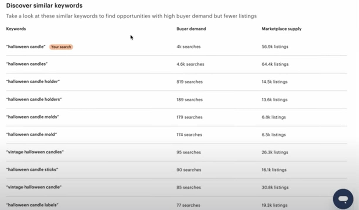 Ви можете використовувати цей інструмент для перевірки ідей, точкових тенденцій, що стосуються вашого інвентарю, та розкриття можливостей ніші, які допомагають вашому магазину виділятися. Крім того, це чудовий ресурс для вдосконалення ключових слів у ваших списках, щоб зв’язатися з більш відповідними покупцями. Ми розгортаємо інструмент поступово протягом наступних кількох тижнів.
