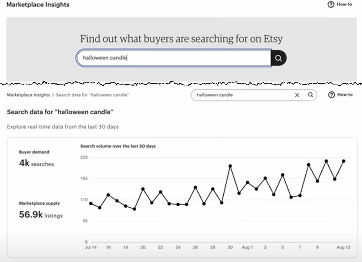 Новий інструмент Insights Marketplace дозволяє розблокувати розуміння того, що покупці насправді шукають на Etsy, щоб ви могли використовувати ці розуміння для вдосконалення своїх списків та з’являтися в більш релевантні моменти.