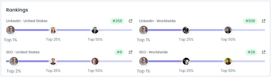 Пітер входить до 1% найкращих творців LinkedIn у Сполучених Штатах і 2% найкращих за пошуковою оптимізації в країні. У всьому світі він посідає 28 місце в SEO та 938 місце в LinkedIn. З ан Оцінка впливу з 7520 балівйого профіль демонструє постійне зростання, піднявшись із 47 000 до понад 72 000 підписників лише за 13 місяців. Рівень його залученості залишається високим, що відображає лояльну та технічну аудиторію, яка цінує автентичність, а не вірусність.