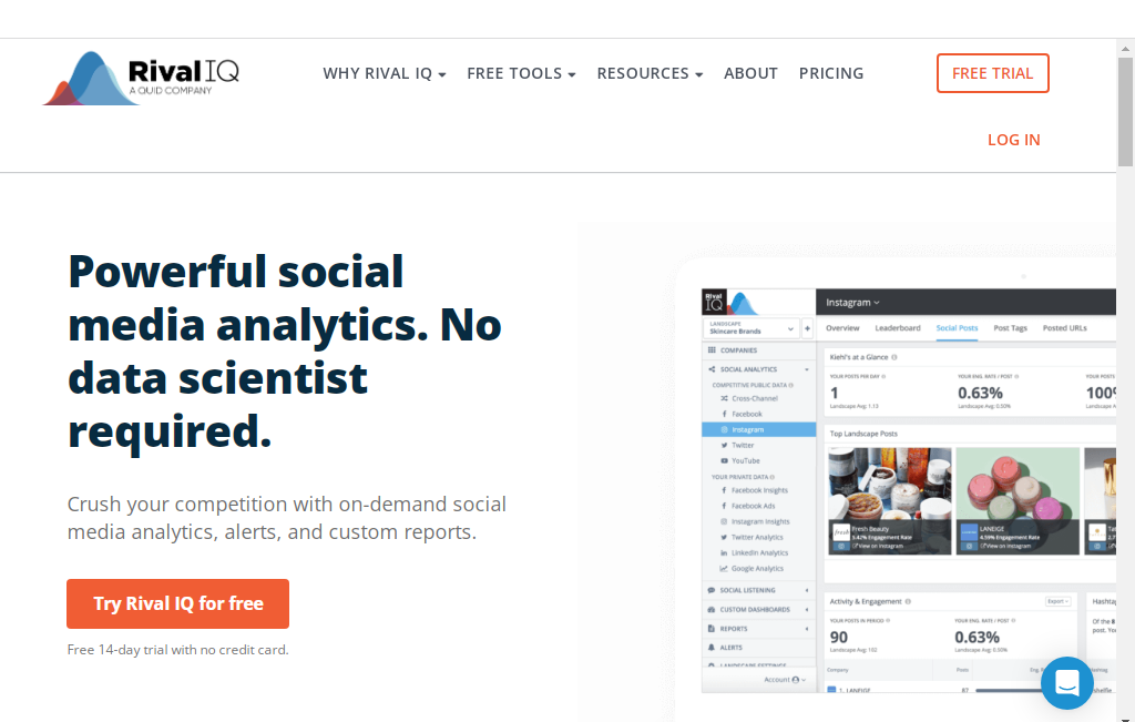 Використовуйте Rival IQ, якщо хочете знати, наскільки ви успішні в соціальних мережах і про контрольні показники. Крім того, Rival IQ надає користувачам докладні звіти, аналіз конкурентоспроможності та інструменти соціального прослуховування.