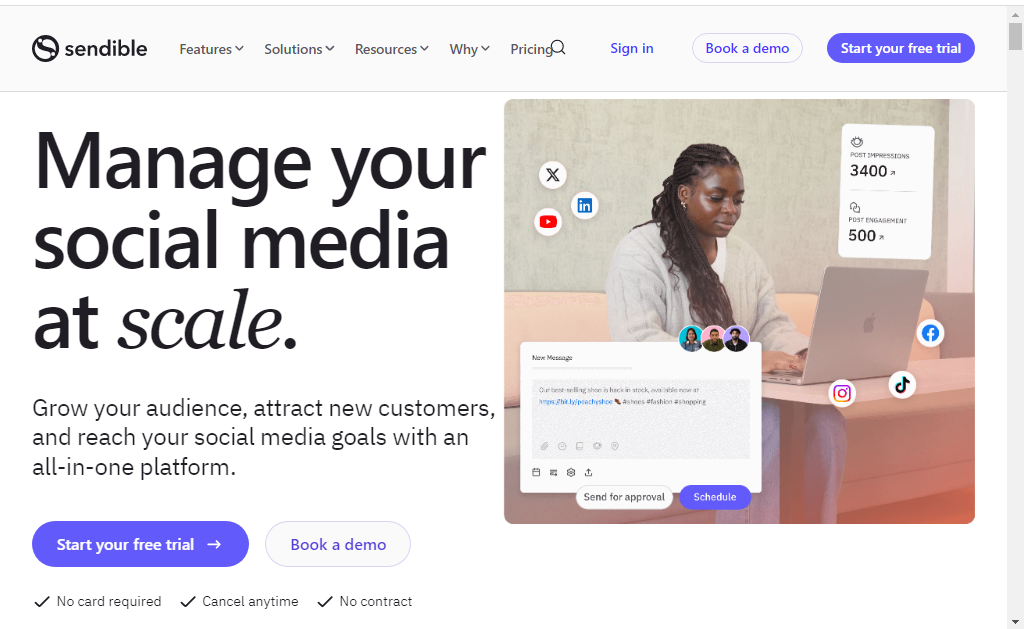Sendible має зручну інформаційну панель. Інструмент пропонує інструменти керування, автоматичні публікації та відстеження кількох кампаній.