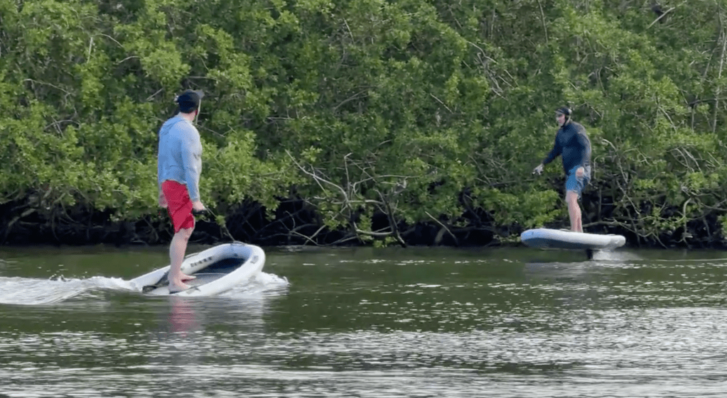 Цікаво, що, оскільки фольга набагато ефективніша, як тільки ви вийдете з води, ви не тільки значно прискорюєте, але й вам потрібно набагато менше потужності, щоб досягти однакової швидкості. Мені сказали, що фольга займає половину енергії просто круїзу, як традиційна дошка (і саме тому ви можете їздити на фольгах набагато довше, ніж електрична дошка для серфінгу або човен).