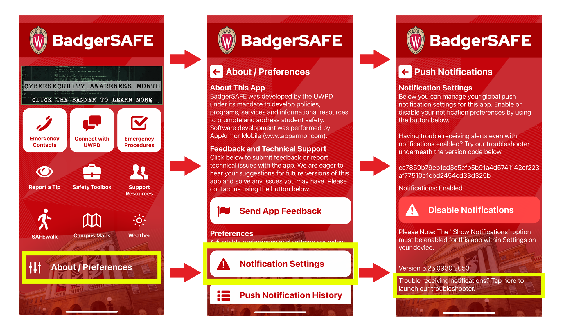 Додаток Badgersafe-це чудовий, єдиний магазин для всіх речей, пов'язаних з безпекою в UWPD. Це відмінний ресурс для нашої громади і є основним способом, який ми попереджаємо нашу громаду про конкретні надзвичайні ситуації, що відбуваються в сусідніх місцях поза межами кампусу. Дізнайтеся більше про попередження про надзвичайні ситуації за межами кампусу.