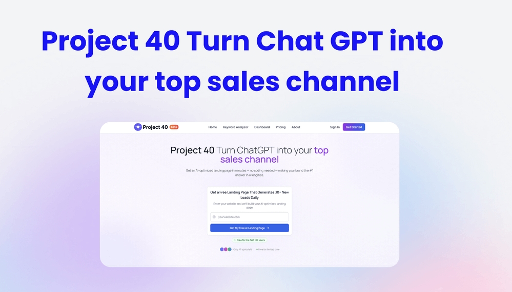 На відміну від традиційних платформ SEO, Project 40 зосереджується на видимості AI, а не на пошуках рейтингу. Він призначений для підтримки малого та середнього бізнесу, а також більших підприємств, пропонуючи практичні інструменти для подолання розриву між споживачами та вмістом бренду.