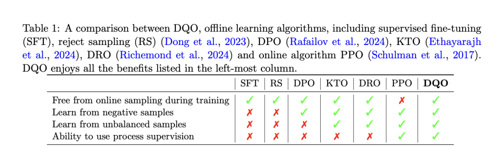 DQO пропонує кілька практичних переваг. Це усуває необхідність онлайн-вибірки, зменшуючи обчислювальні витрати. Крім того, він може вчитися на незбалансованих і негативних зразках, підвищуючи свою надійність у різних сценаріях. Використання винагород за процеси допомагає покращити можливості міркування, одночасно покращуючи узгодженість із вимогами завдання.