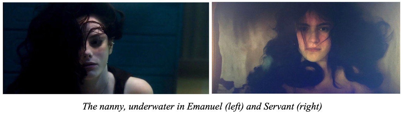 Здається, це повна випадковість, що “Слуга” просто включає в себе невиразно схожі кадри. Навіть докази, надані Грегоріні, є натяжними, наприклад, підводна сцена в «Емануелі» — це послідовність снів, де будинок наповнюється водою, а Леан у ванні — це просто вона, яка лежить на мілководді.